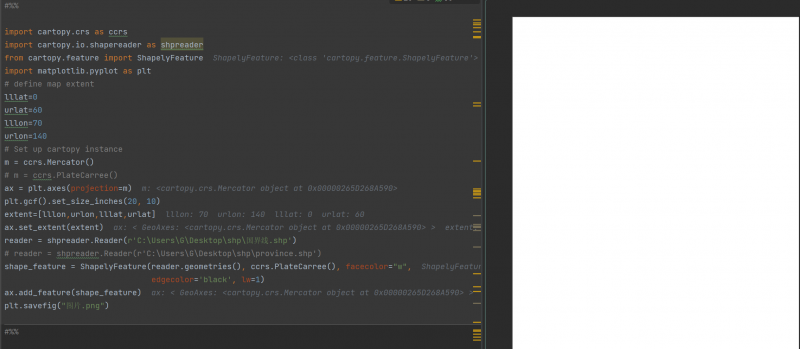 大神们,求助,我使用cartopy读取shp并画图但是缺显示空白,请问这是为什么呢?附件是使用的shp地图(百度链接:https://pan.baidu.com/s/1IwBI8u66Ek3lspDxZBOMrQ 提取码:zqty),使用arcgis可正常打开显示。