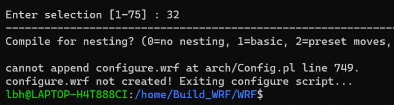 第四步、安装WRF在WRF文件夹下,输入:./configure