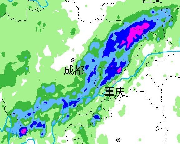 截至今天上午8点,华北南部边缘-陕东南-四川盆地北部一带出现强降水。预报未来一天,青藏高原东侧区将出现中到大雨:其中四川盆地中部局地暴雨。