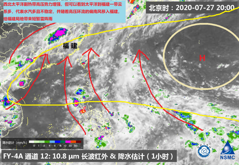 【福建:高温炎热,午后中北部山区留意局部雷阵雨】昨日(25日)白天到夜间由于锋面靠近,太平洋副热带高压减弱东退,中北部各地出现雷阵雨,雷雨时伴有瞬时强阵风和短时强降水,福州闽清雄江镇昨日夜间21~22时左右出现100.9毫米的暴雨。今天(26日)副热带高压势力开始加强,但并未完全控制福建,近地面仍吹西南风,加之各地水汽较多,因此各地仍有短暂阵雨或雷雨,气温方面,由于降雨加上云量较多,各地高温普遍在29~34度左右,局部达到35℃。明天(27日)太平洋副热带高压笼罩福建,风场为偏南风,各地以多云到晴的天气为主,午后仅在中北部山区局部有热对流发展带来的午后雷雨,气温方面,各地高温普遍在35℃以上,其中南平,三明,宁德,福州的部分地区高温可达37~·38℃,局部可达39℃,出游需注意防晒防暑,午后也要留意天气变化。