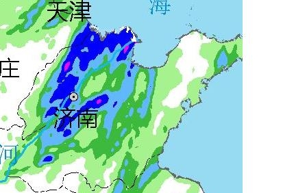 晚8点16分的滨州站雷达图,可见测站北方有成片的n形强回波区。
