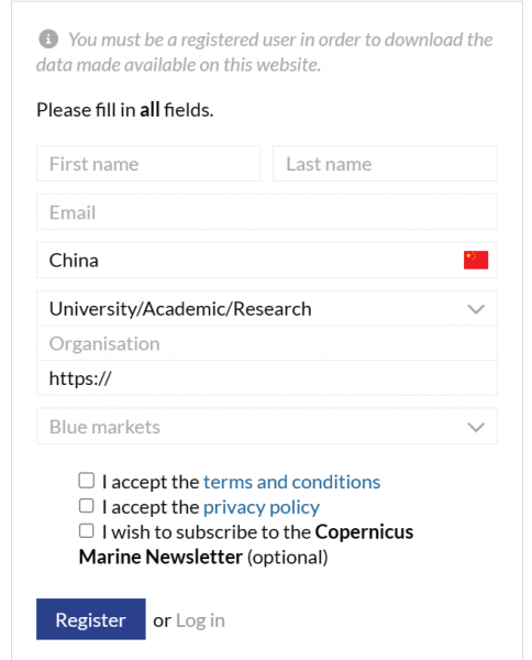 最近想下载逐日的海洋再分析数据,变量包括海气热通量,经向、纬向洋流,以及混合层深度等,看文献找到了GLORYS这套,但是在注册这一步卡住了,注册填了学校后会出现URL这一行,也是必填项,我试过瞎填收不到邮件无法注册,希望有注册过的大神们帮帮忙~