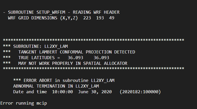 因为 truelat1 和 truelat2 相同,导致LL2XY_LAM 错误